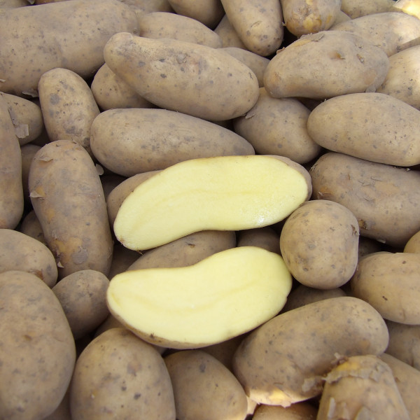 Eine gelbfleischige und festkochende Sorte mit einer sehr schönen, leicht hörnchenförmigen Form und sehr feinem Aroma. Wird in der Lüneburger Heide von Karsten Ellenberg als späte Sorte angebaut und ab August geerntet.